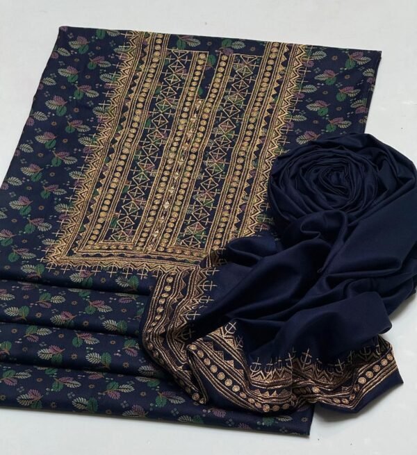 • Shirt: Premium quality dhanak fabric featuring an elegant all-over print with Balochi-style embroidered neckline (gala) for a rich, traditional look